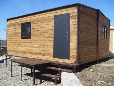 Каркасный мобильный дом для круглогодичного проживания из двух модулей, высота потолка 2,3 м.